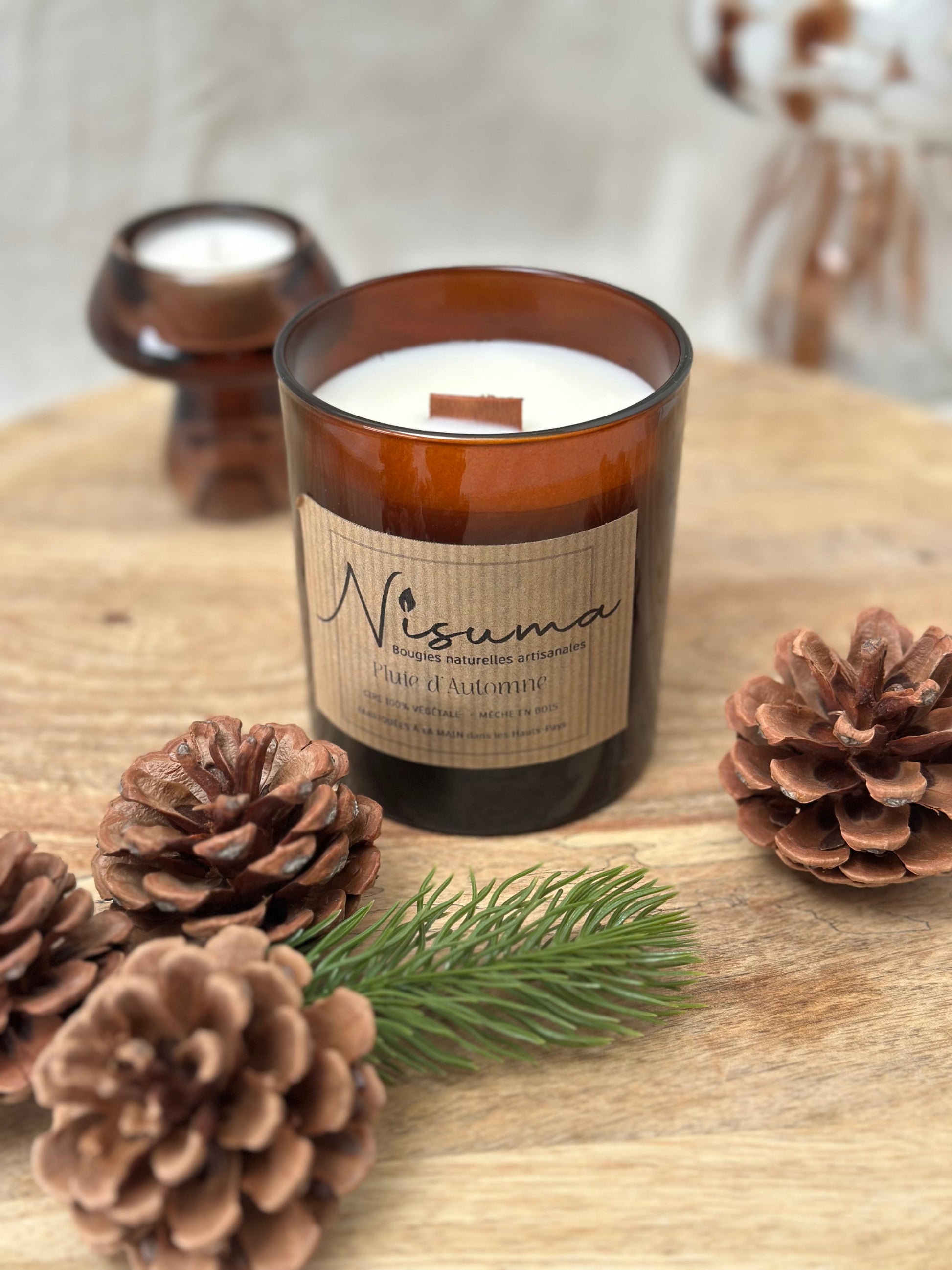 La Bougie Pluie d'Automne évoque la clarté et le calme qui suivent une averse automnale dans les sous-bois, y apportant une sérénité profonde.