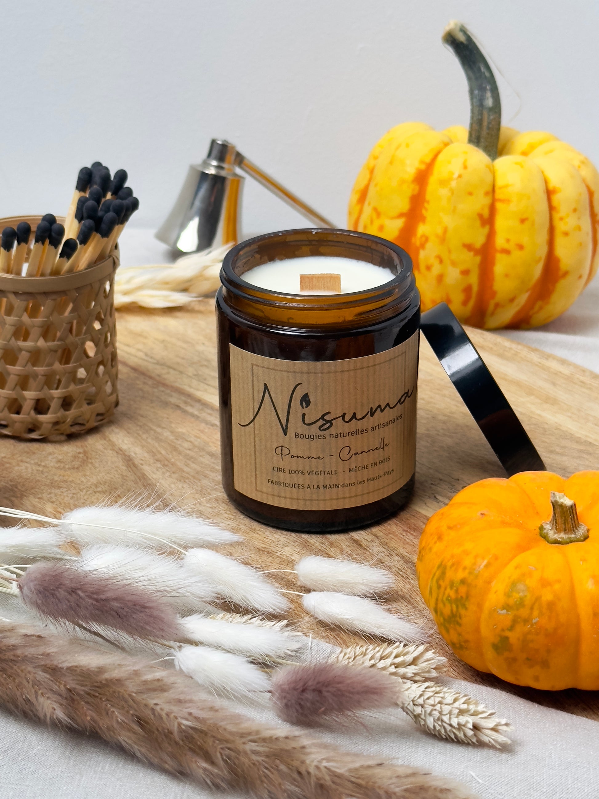 Notre bougie Pommpe - Cannnelle allie l'arôme chaud et captivant d'une tarte aux pommes fraîchement sortie du four avec la délicieuse cannelle et la vanille gourmande. Profitez de cette fragrance sucrée et savoureuse dans votre maison pour une ambiance chaleureuse et accueillante.
