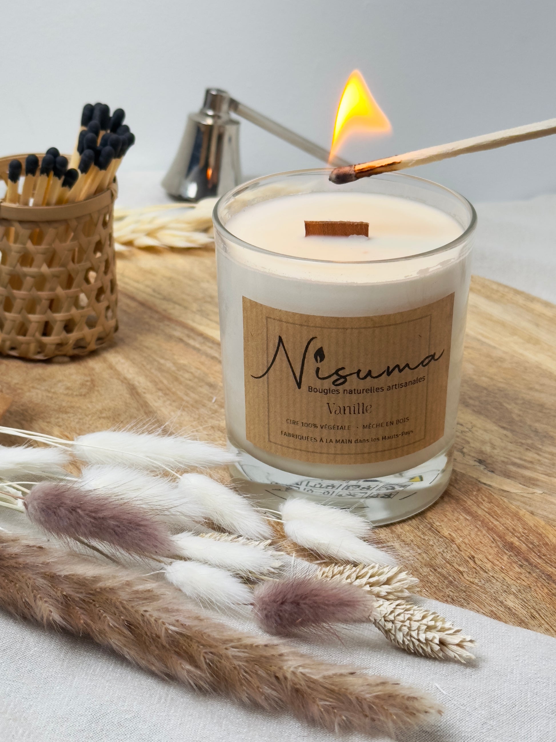 N'oubliez pas de bien recouper votre mèche en bois avant chaque allumage. Si votre bougie a sa mèche trop grande, elle s'étouffera.