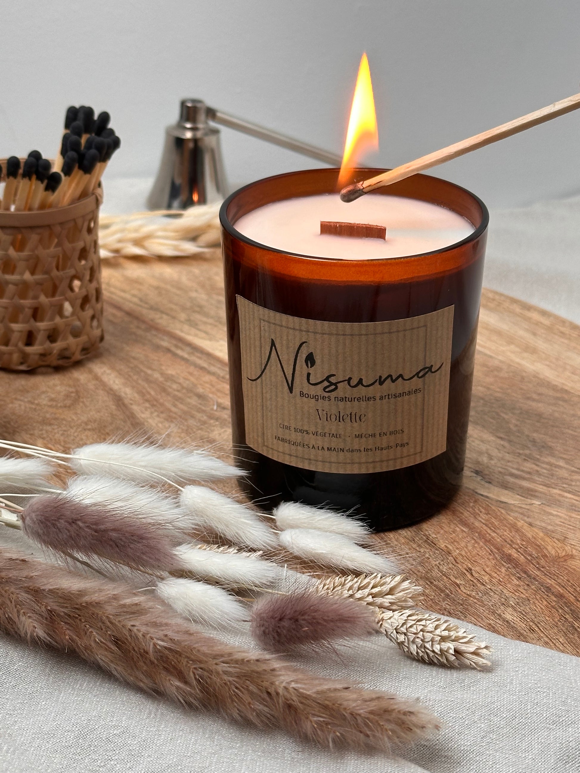 Notre bougie Violette éveillera vos sens avec son doux parfum sucré. Son odeur subtile, inspirée de la nostalgie des bonbons violettes, vous apportera une touche de rétro dans votre maison. Laissez-vous envelopper dans sa douceur et sa délicatesse.